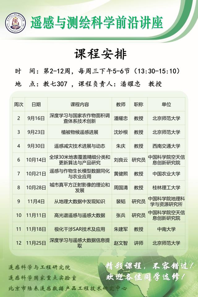 遥感与测绘科学前沿讲座---欢迎选修!