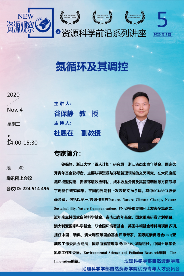 【11月4日讲座】谷保静,氮循环及其调控