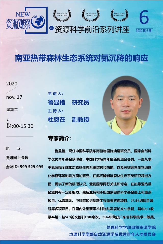 【11月17日讲座】鲁显楷,南亚热带森林生态系统对氮沉降的响应