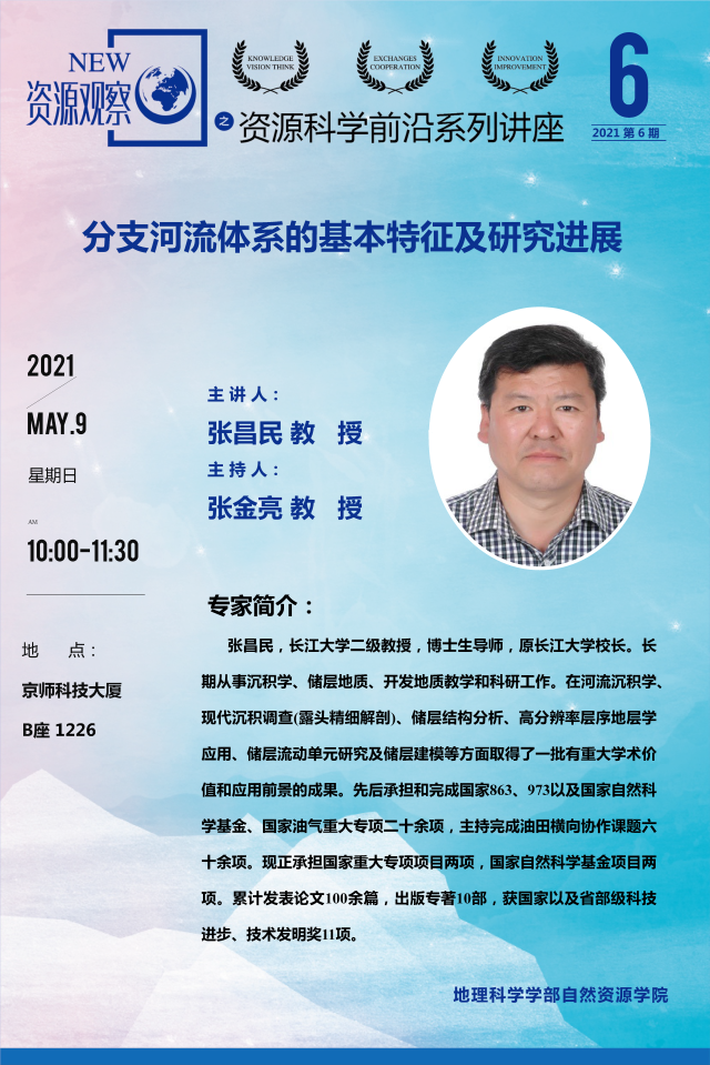【5月9日讲座】资源科学前沿系列讲座第6期(2021)张昌民:分支河流体系的基本特征及研究进展