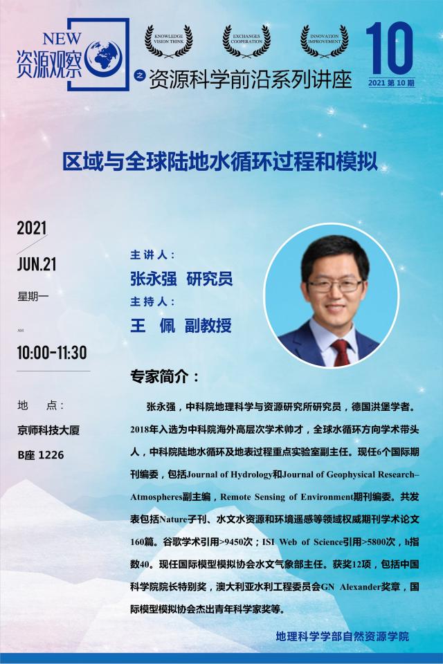 【6月21日讲座】张永强 研究员:区域与全球陆地水循环过程和模拟