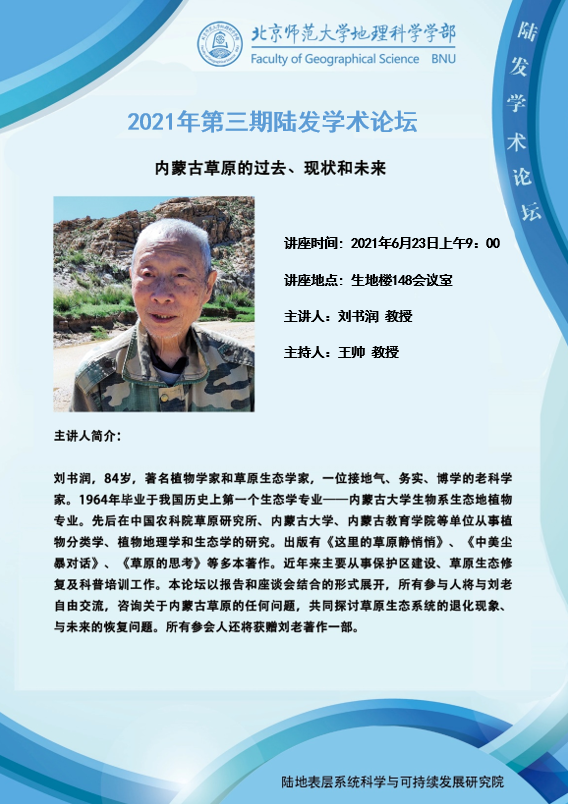 【6月23日讲座】2021年第三期陆发学术论坛:内蒙古草原的过去、现状和未来