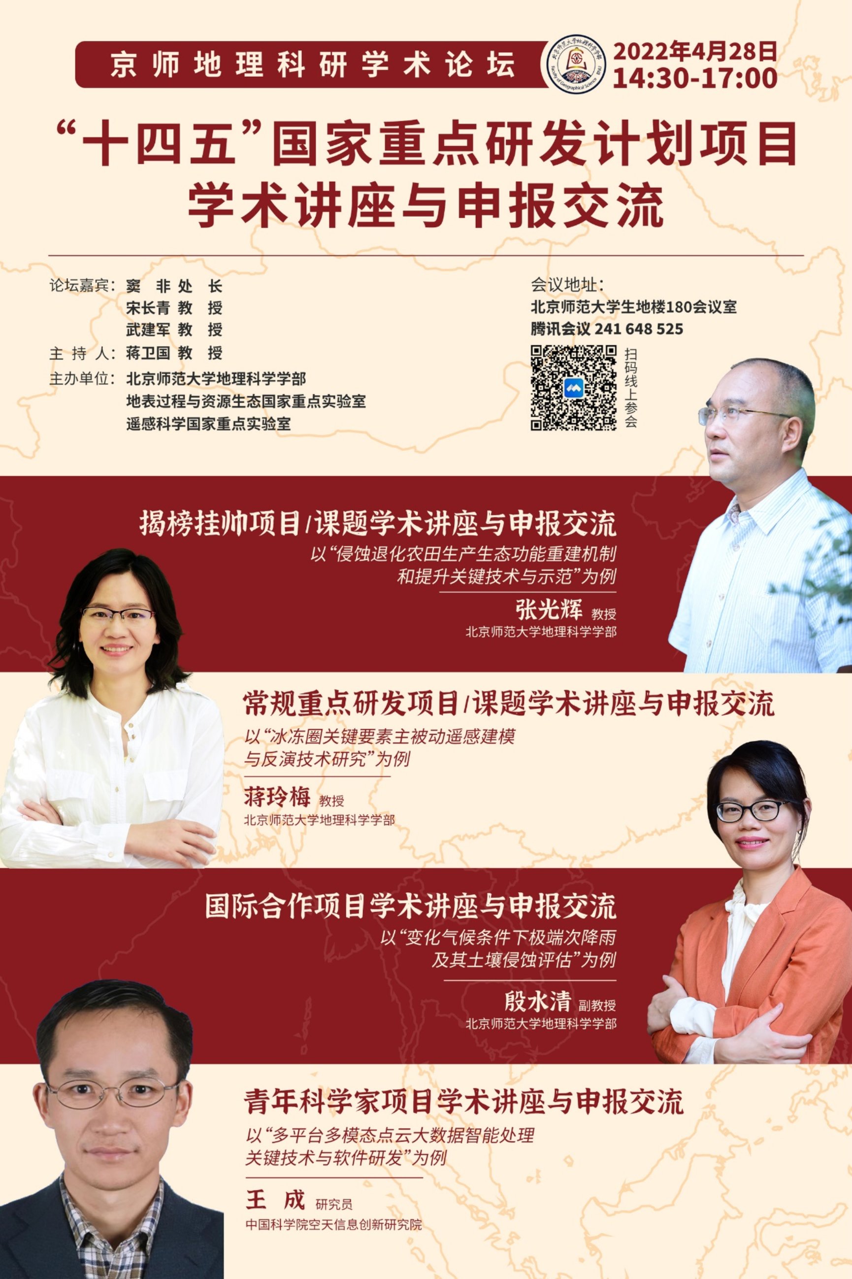 【4月28日讲座】“京师地理科研学术论坛—‘十四五’国家重点研发计划项目学术讲座与申报交流”预告