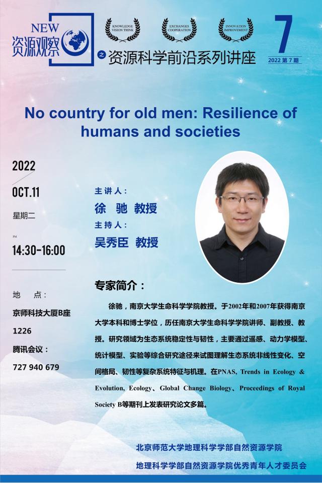 【10月11日讲座】徐驰 , No country for old men: Resilience of humans and societies