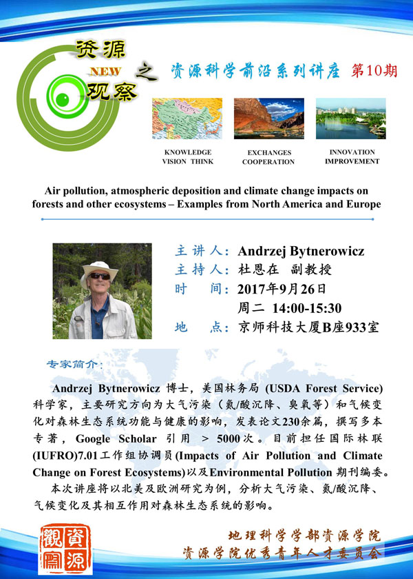 【讲座预告】资源科学前沿系列讲座(第10期)