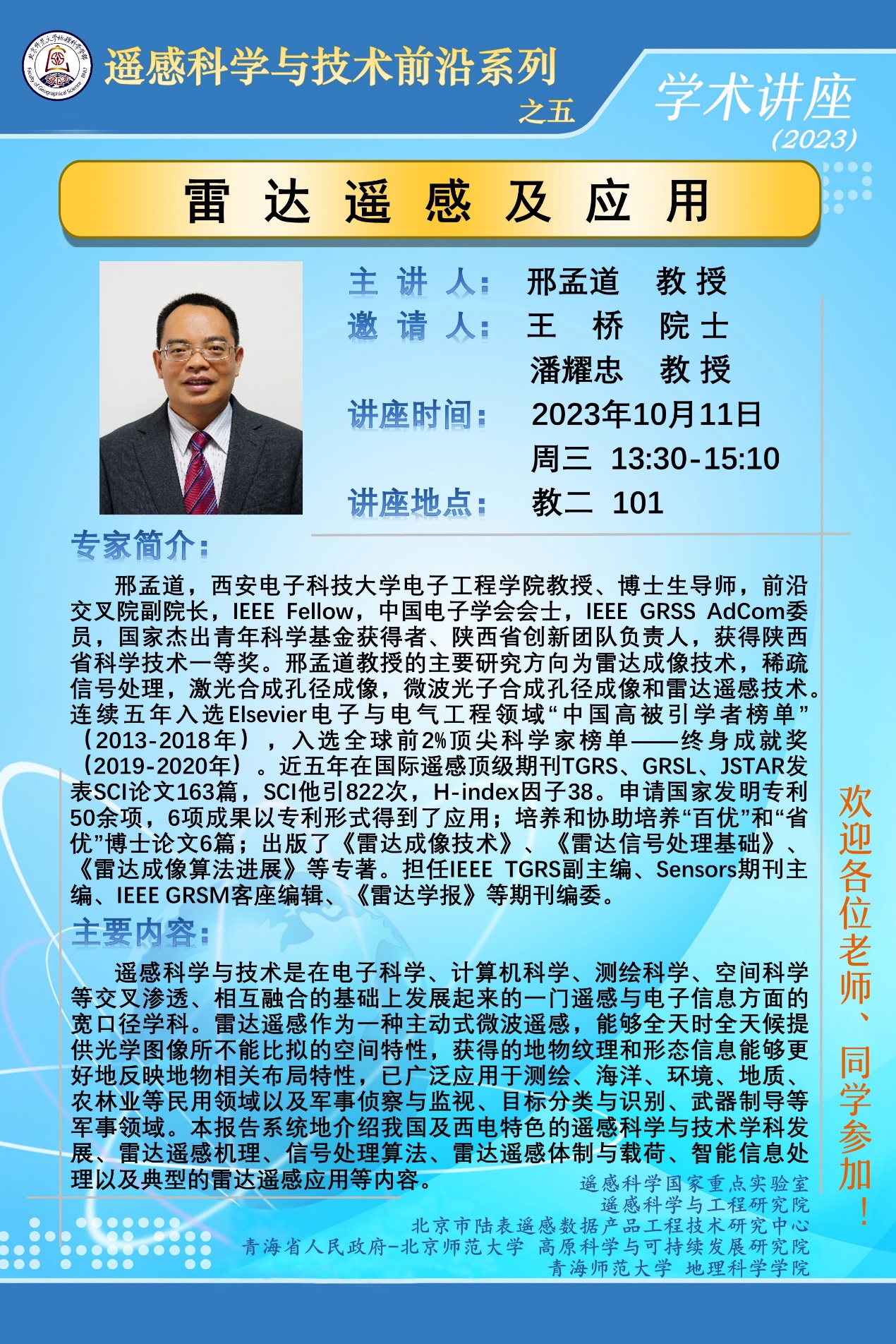 【10月11日】邢孟道 教授,雷达遥感及应用