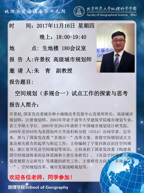 【讲座预告】地理学前沿讲座第十九期