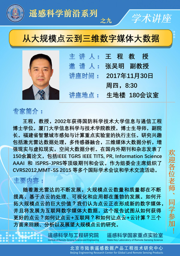 【讲座预告】遥感科学前沿系列讲座之九
