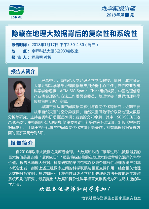 【讲座预告】地学前缘讲座 2018第1期