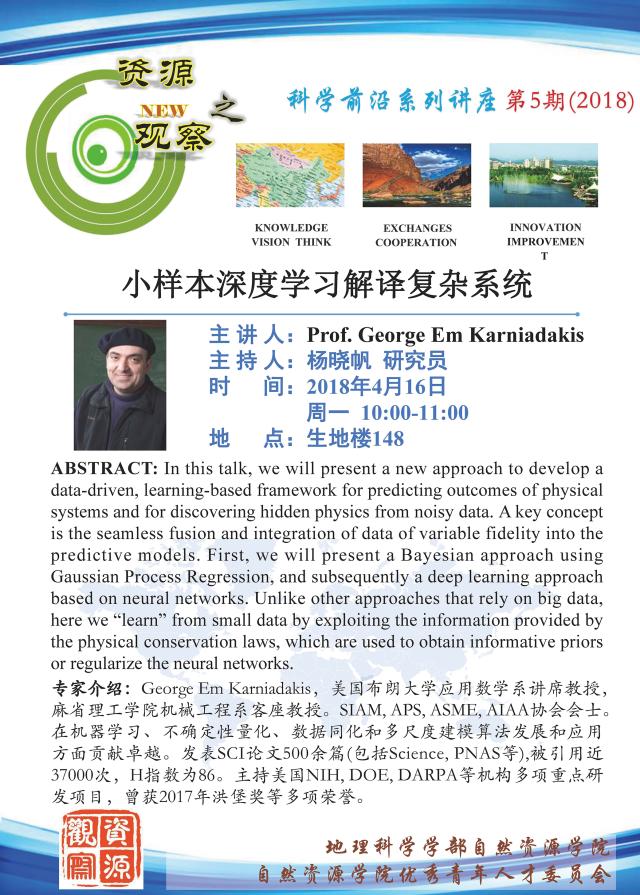 【4月16日讲座】George Em Karniadakis 小样本深度学习解译复杂系统
