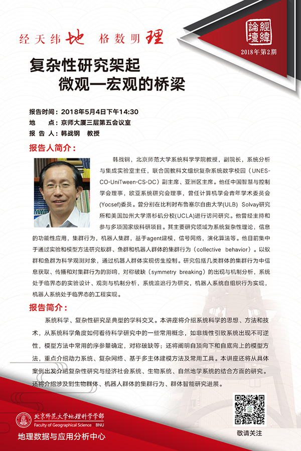 【5月4日讲座】韩战钢 复杂性研究架起微观-宏观的桥梁