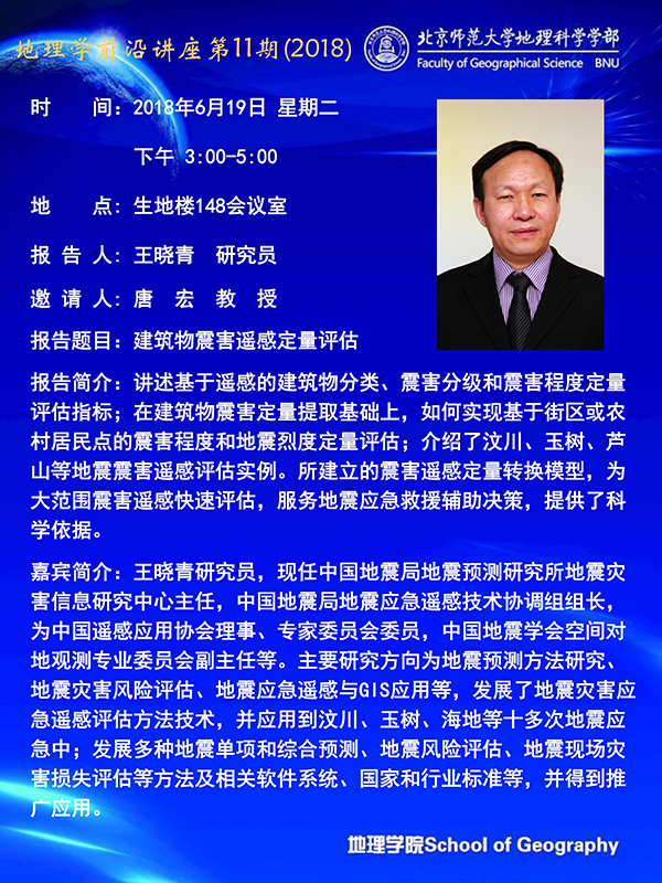 【6月19日讲座】王晓青:建筑物震害遥感定量评估