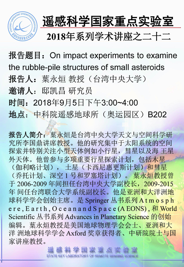 【9月5日讲座】葉永烜:On impact experiments to examine the rubble-pile structures of small asteroids