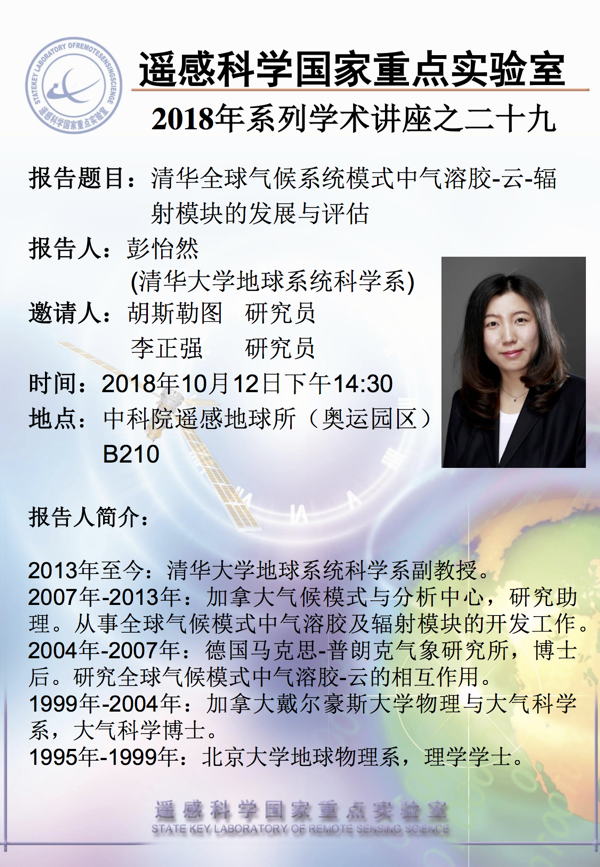 【10月12日讲座】彭怡然:清华全球气候系统模式中气溶胶-云-辐射模块的发展与评估