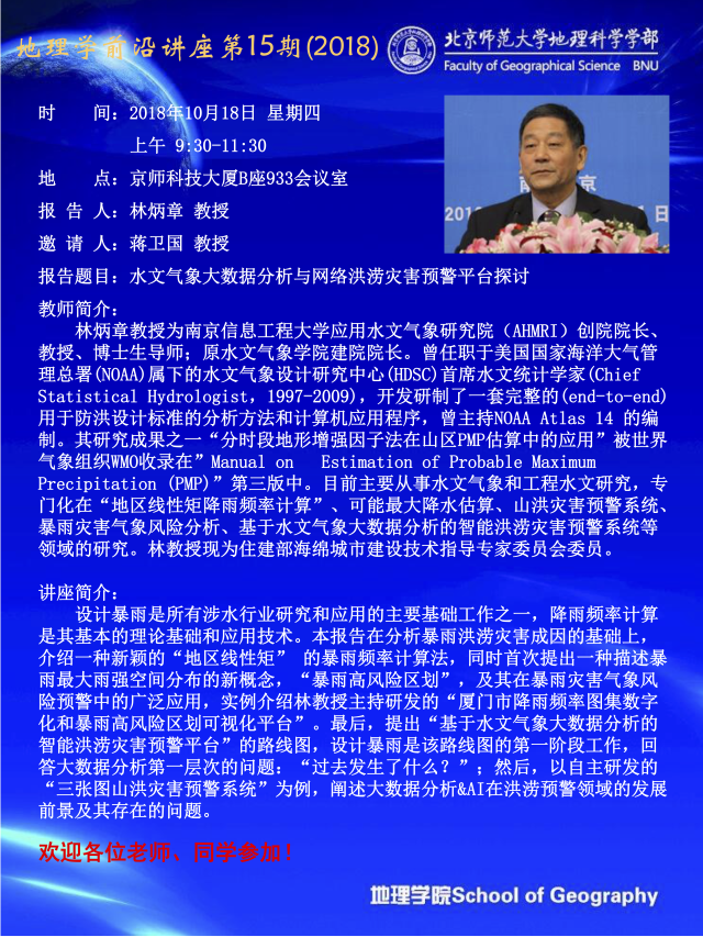 【10月18日讲座】林炳章:水文气象大数据分析与网络洪涝灾害预警平台探讨