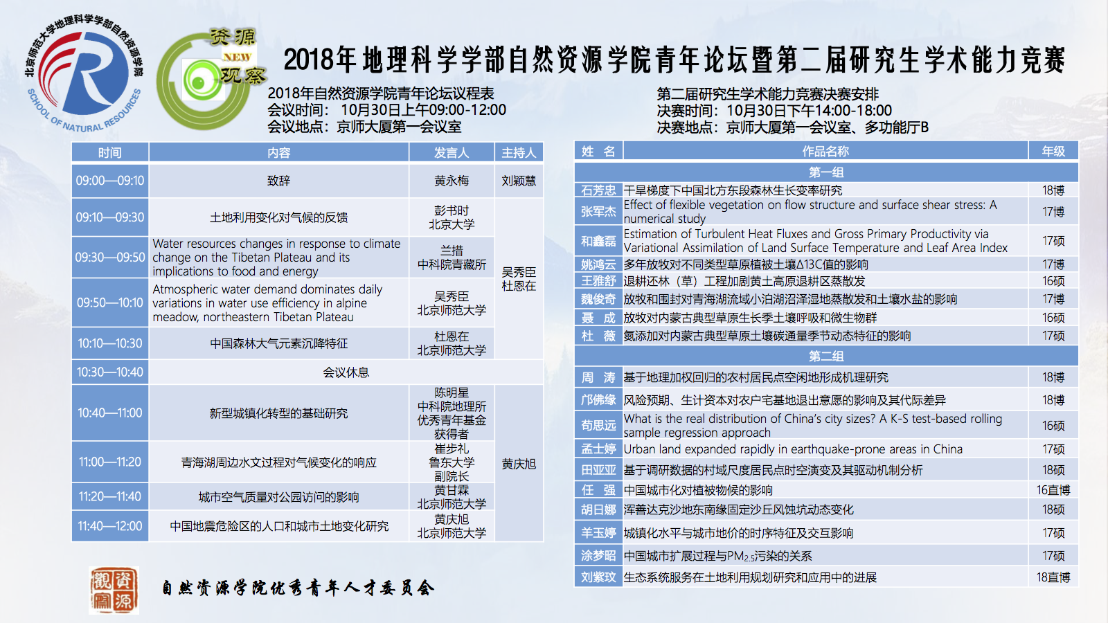 【10月30日学术能力竞赛】2018年老司机论坛 自然资源学院青年论坛暨第二届研究生学术能力竞赛