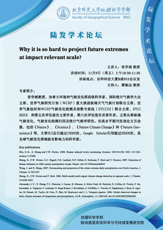 【11月9日讲座】张学斌:Why it is so hard to project future extremes at impact relevant scale
