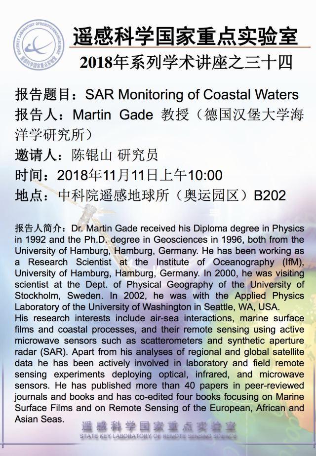 【11月11日讲座】Martin Gade:SAR Monitoring of Coastal Waters