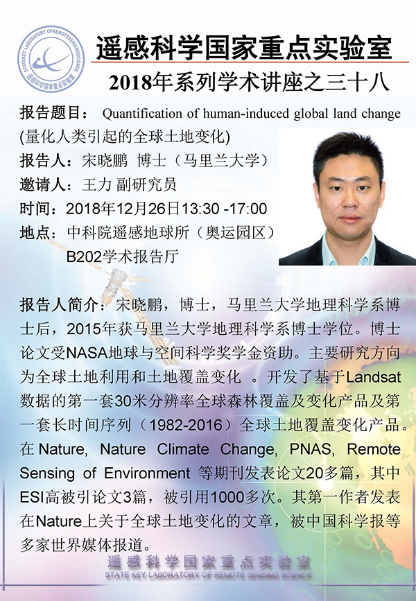 【12月26日讲座】宋晓鹏,Quantification of human-induced global land change (量化人类引起的全球土地变化)