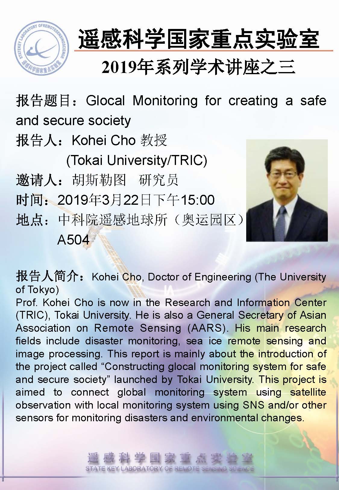 【3月22日讲座】Kohei Cho,Glocal Monitoring for creating a safe and secure society