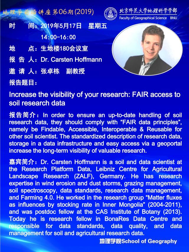 【5月17日讲座】Dr. Carsten Hoffmann:Increase the visibility of your research: FAIR access to soil research data