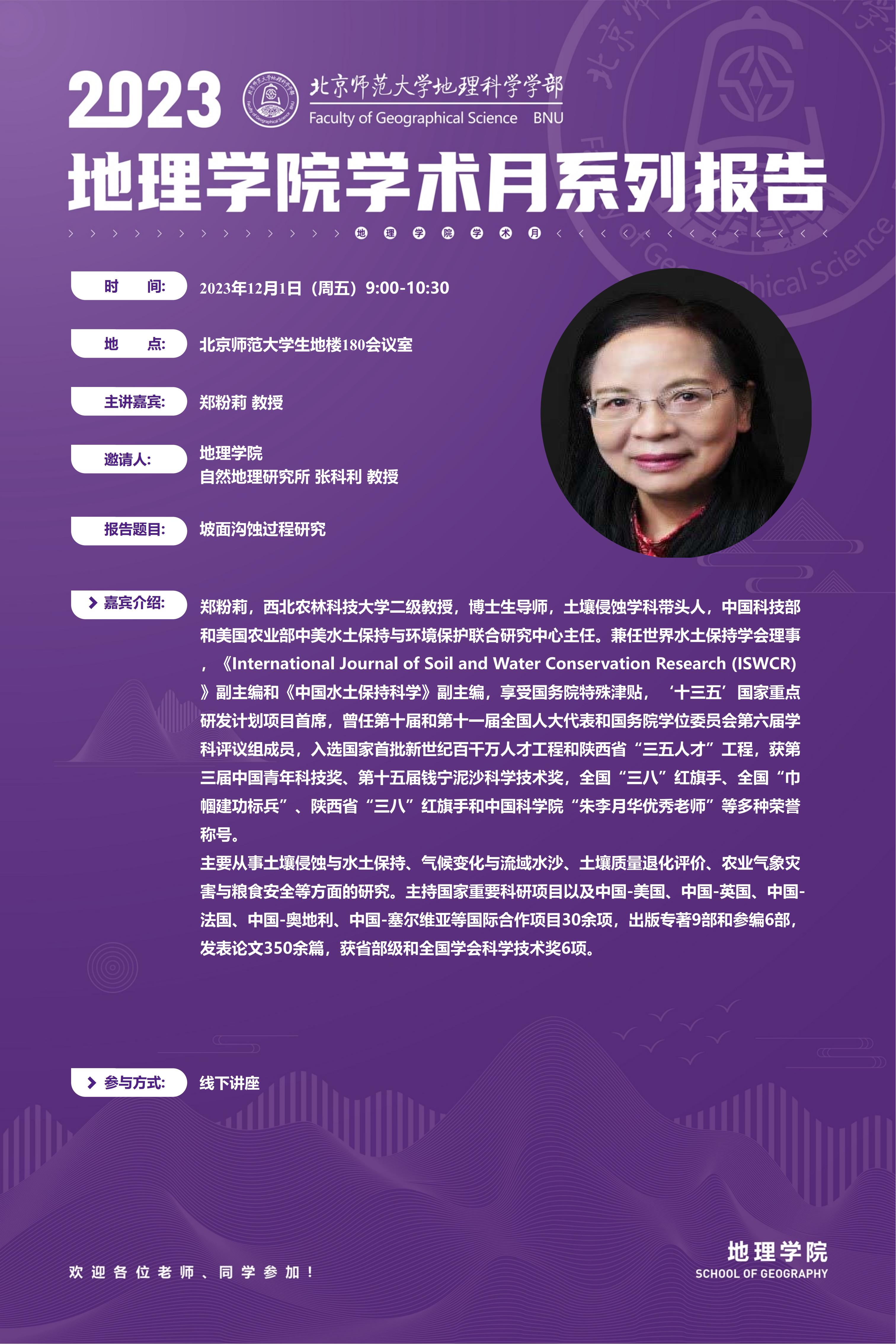 【12月01日】郑粉莉 教授,坡面沟蚀过程研究