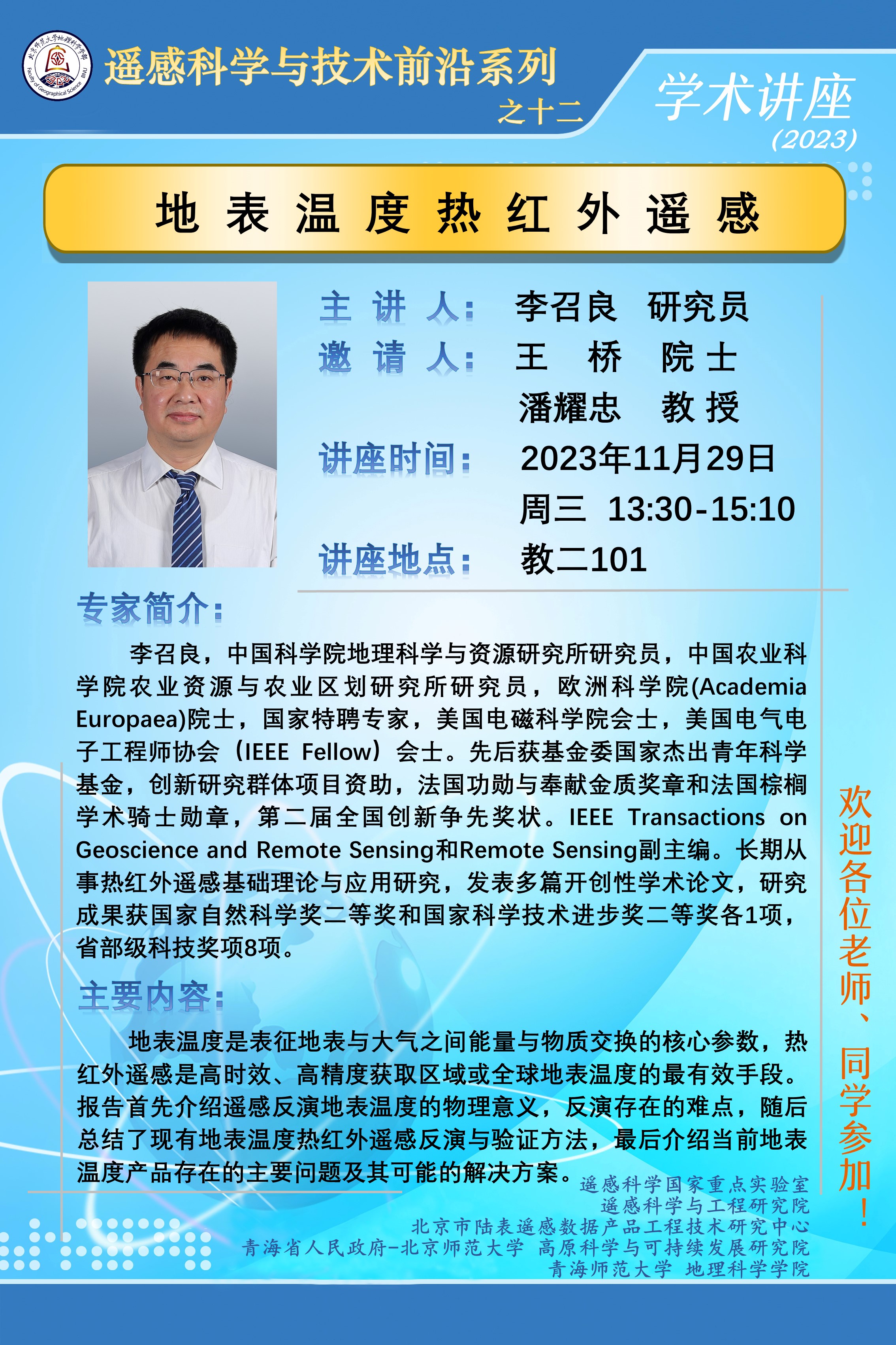 【11月29日】李召良 研究员,地表温度热红外遥感